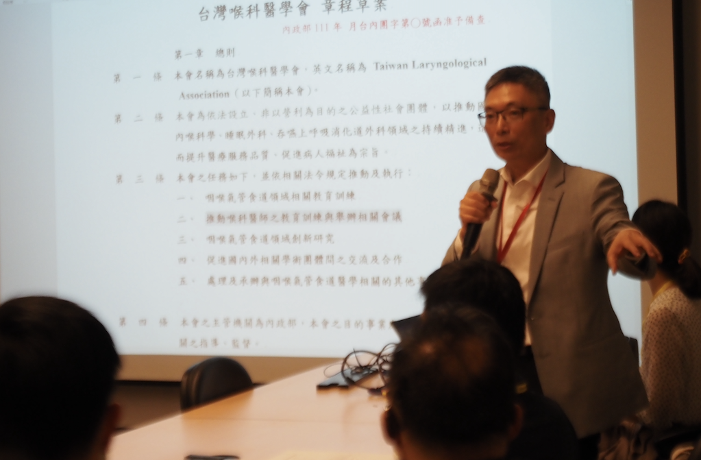 近兩年來因新冠疫情導致呼吸道症狀檢查與治療以往大相歧異 ,更 凸顯 喉科學領域專訓練之重要性。 經多位領域專家前輩 同道 熱心 督促,吾等 乃 著手 起 草發以咽 喉氣管呼吸道 食道 教育為宗旨之醫學會 (草案簡稱台灣喉科醫學會 ),期能提升相關次專科教育訓練,健全耳鼻喉頭頸醫學之面發展。